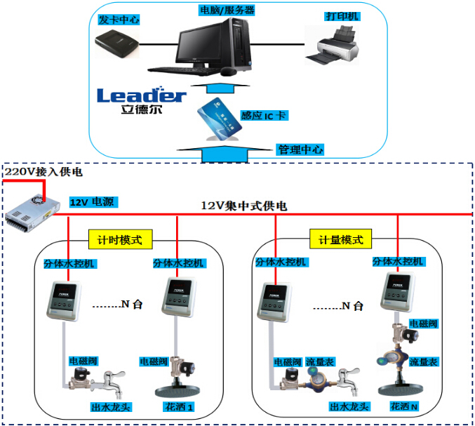 我公司經過廣泛的市場調研和深度分析,經過長時間的大量的實踐和努力自主開發了智能IC卡水控系統,并在社會上廣泛使用。此產品的推出可讓用戶按管理需求實現個性化用水,給水資源管理者提供了科學有效的解決方案,時同也是為國家能源節約提供新的思路。我公司研制的感應式IC卡節能控制系統不僅能達到節約用水/用電,同時能達到提高效率、合理收費、科學管理、信息共享的目的。深受廣大用戶的歡迎。同時,可以為當今能源節約提供一種新的思路,為資源合理利用提供了可能。 選擇使用我公司生產的IC卡控水收費系統,可通過計量或計時模式的科學收費,科學有效的控制用水,可節約用水80%左右,避免了無謂的浪費;同時使用者合理、精確的收費,解決了現金收費帶來的管理漏洞和諸多不便問題,避免了使用澡票帶來的繁瑣和一張澡票洗半天的浪費現象。使用者持卡洗澡,絕對的實行了誰用水誰付費,用多少付多少合理收費的原則,合理公平分配了用水,養成使用者勤儉節約的習慣,減輕了合作單位或后勤部門的經濟負擔。同時由于本系統的搭建,為今后實行一卡通平臺系統搭建了網絡平臺,可實現一卡通名數據的統一管理和信息共享,使得管理更加科學化,精細化、集中化,徹底改變了單位后勤部門管理混亂、數據資源統計繁瑣,管理落后、信息化資源分散的舊局面,為科學、有效化、智能化、信息化大數據的管理奠定了基礎,大大提高了使用單位的管理效率和提升了單位信息智能化管理的形象和檔次。 一、傳統洗浴管理與智能IC卡控水/電控制系統的比較: